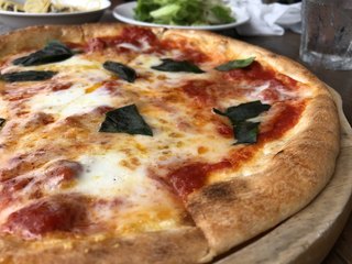 こちらが人気の「窯焼きピッツァ」。釜焼きならではの生地のふっくら感と焼け具合は、写真だけでも食欲をそそられますね。