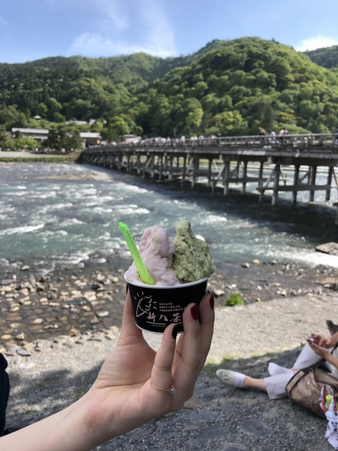 嵐山の食べ歩きなら「新八茶屋 (しんぱちちゃや)」で、インスタ映えするカラフルなジェラートはいかがでしょうか。