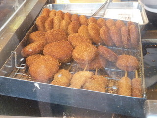 嵐山に行ったとき食べ歩きに利用しました。手で持てないぐらいあっつあっつ!揚げたてだあ~( 。゚Д゚。)さっくさっく、肉の存在感もばっちし(^^)d食べ歩きにおすすめ~