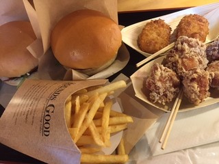 「豆腐コロッケ」→ これあまり豆腐感がなく、シンプルにコロッケとして旨い!ご飯が食べたくなる!笑「京野菜と豆腐バーガー」→ これは、正直かなりうまい。豆腐というよりは、蒲鉾みたいなのがサンドされていて、タルタルソースが絶妙に旨い。