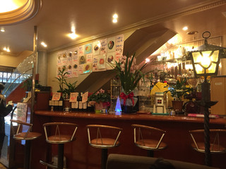 ちょっと外に出たら良い雰囲気の喫茶店を発見。ブロンズ製の柵に囲われたエントランスから店内に入ると左手にカウンター、正面から右手にはテーブル席で、2階にも席があるようです。