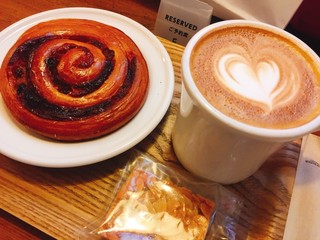 レジのところにクロワッサン系のパン、焼き菓子、サンドイッチが置かれていて品揃えは魅力的。コーヒーは普通のブレンドはマシーンですが、シングルオリジンの豆はハンドドリップで淹れてくれます。