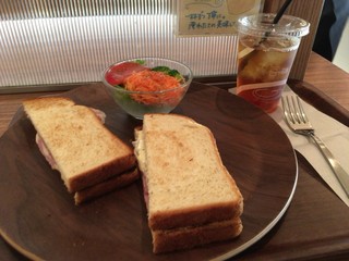 こちらはモーニングメニューで味わえる「ハムと北欧チーズのサンドウィッチ」です。