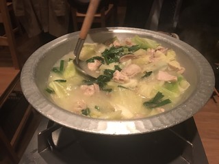 おすすめの逸品は「名物鶏もつ鍋」。水炊き風の白濁スープに具がたっぷり入っていて、かなりの贅沢感があるとのこと。