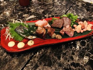 串カツの盛り合わせ。パーッと説明されたので、どれがどれかは食べてみて確認した感じですね笑 個人的には野菜のが美味しかったですねー 2軒目だからだと思いますが、、笑 オクラとかレンコン、アスパラとか定番ですがやっぱり美味しいですねー
