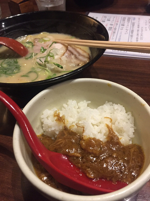 30時間煮込んだという濃厚な「鶏豚骨ラーメン」は、ラーメン好きならぜひ味わってみるべき逸品とのこと。ミニカレーとのセットが好評です。