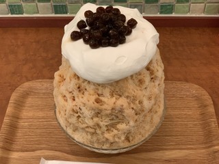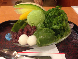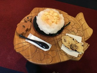 清潔感があり「ガヤガヤ」していなく丁度良い照明が好感もてました。すごく甘いので「甘党」の方には持ってこいです。かき氷の部分は「ふわふわ」したジェラートのような感じです。