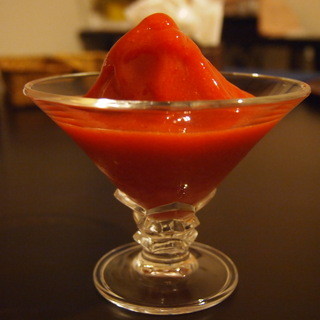 金柑のかき氷をお願いしました。バーボンの入ったかき氷です。氷も今、流行りのフンワリ系ではなく、ジャリっとした食感です。アルコールもしっかりと効いていて、それが案外イケますね!