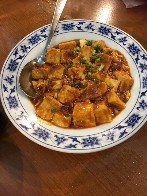 おすすめの中華料理が、麻婆豆腐。汗が出るほどの辛さとのこと。