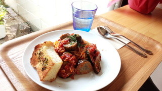サイドメニュー2品とスープ・ライス付きでオトク感♪もっと真っ赤っ赤で参上なのかと思ってました。優しめのビジュアルに優しめのピリ辛テイスト☆豚の大腸に抵抗無ければ 美味しく頂けますよ♪スープも優しめのテイスト、きっとコレが本場感なんだ。