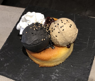 白黒胡麻と濃さが選べるアイスを乗せたパンケーキは、柔らかくフワフワで甘すぎず胡麻の風味を引き立てていた、ボリュームがあるけど重くなかったのは、商品開発にあたる努力研鑽を感じました。