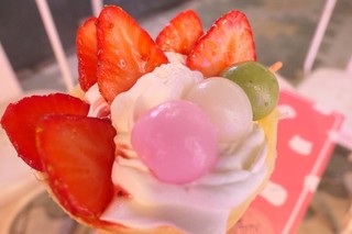 クレープの内訳は三色団子と苺・生クリーム・苺ソース・中に苺のアイスクリーム。何故か苺まみれ。夏目=苺のイメージはあんま無いですが。お団子は七辻屋をイメージしてるんでしょうね。