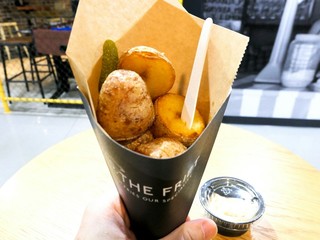お芋の味がしっかりしていてホクホク。表面はカラッと揚がっていて美味しい。チーズディップは濃厚で、ほどよい塩加減。お芋の甘みを引き立ててくれます。
