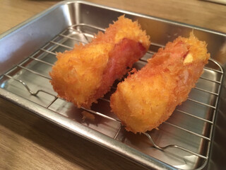 玉子のマヨネーズ和えをハムで巻き、揚げているのだとか。