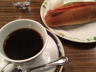 サラダとゆで玉子と珈琲(or紅茶)がついて、このお値段。パンは、適度にサクサク感があるパンで、喫茶店のパンにしては美味しい♪また、ジャズ風のBGMといい、ウェイトレスさんの落ち着いた接客といい、内装とマッチしていて、心地が良いです。