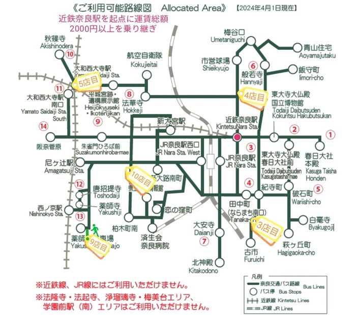「奈良公園・西の京1Day Pass」600円を利用エリアいっぱい広範囲に移動してこそのプランです。