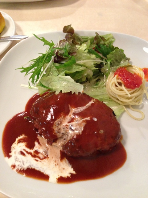 ハンバーグも人気メニューのひとつ。付け合せも綺麗に盛り付けられていますね。
