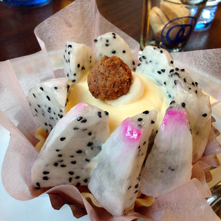 「フレッシュタルト」です。この日はドラゴンフルーツが使われており、全部で6種類のケーキから選ばせてもらえたとのこと。