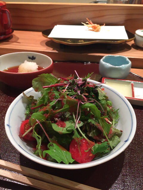 コースメニューの梅肉サラダはほど良い酸味で、酸っぱいのが苦手な人でも美味しく食べられるとのこと。