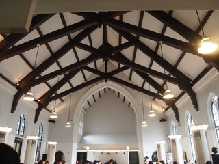 高い天井と美しく張り巡らされた梁、品の良い繊細な窓の装飾に心安らいだ食べログレビュアーも。