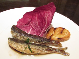 イワシのアヒージョ、温か柔らかで骨までいけちゃいました(^_^)。ほのかにビネガーの酸味(^_^)ホウレン草のカタルーニャ風、レーズンの酸味とアーモンドの香ばしさがアクセントに(^_^)チーズケーキ、チーズが乳製品であることを認識させる濃厚さ(^_^)