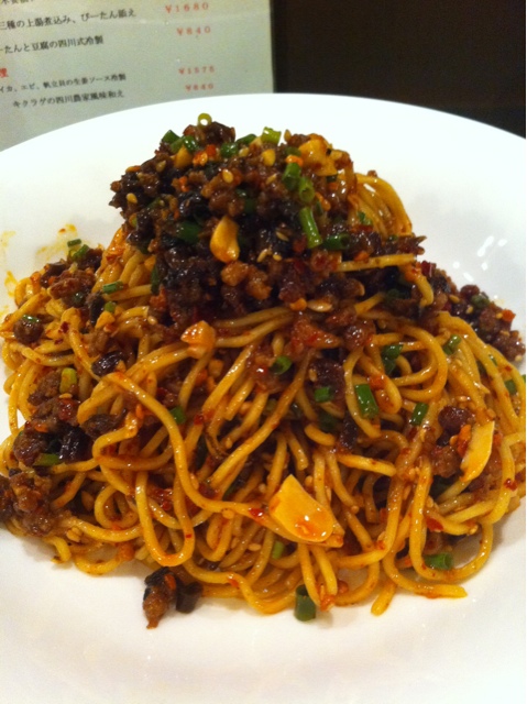 たっぷりと乗せられた唐辛子の辛さが爆発しているという「四川和え麺」です。