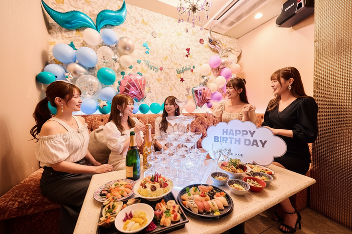 ミラスでは記念日×誕生日×パーティー×貸切宴会×カラオケなど様々な企画にすべて対応可能です!バーエリアでは飲み放題ORワンコインで気軽に楽しめる!ラウンジエリアは高級ソファーVIP、カラオケ付個室、ロイヤルVIP個室などシーンに合わせた空間をご用意しております。