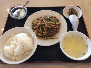 チンジャオロース定食定食が杏仁豆腐付きで税込み600円