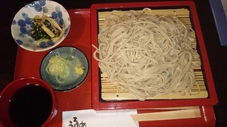 ざるそば:やや細めで、香りがよく、弾力もしっかりめ。水切りはしっかりなされているのに、瑞々しさがありいわゆる模範的な美味しいお蕎麦といった感じで、非常に美味しいです。