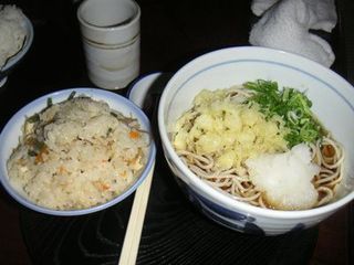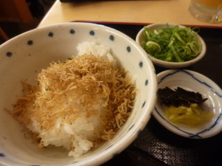 ちりめんご飯。これは、つけものと合わせて食べると、両方が美味しくて。なんかしあわせ。蕎麦湯も七味を入れて最後まで全部頂きました。