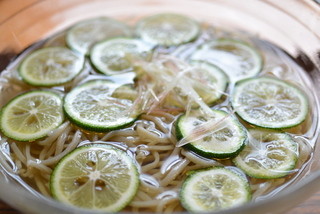 たっぷりとスダチがそばの上に乗った一品が大人気の【手打ちそば 花もも】です。