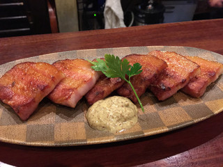 肉厚でジューシーな「厚切りベーコン」などもあります。最初はお酒と肴を楽しんで、シメに蕎麦というのも良いですね。