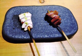 鳥しき(白金)で修行後、鶏及び鶏の解体を勉強。そして地元の亀戸にお店を構える。 彼のセンスはお店の内・外装にも現われているが、鶏の串打ち・焼きは当然の事 野菜の使い方が、巧み。 しっかりと女性の心を掴んでいる。 スパークリングにカヴァを置き、リーズナブル感も嬉しいところだ。 彼も若き天才だろう。 伸びシロがあるので今後も楽しみなお店です。
