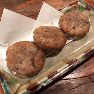 沖縄の田芋に、豚肉、かまぼこ、しいたけを混ぜて練り合わせて揚げたコロッケです。オリオンビールと一緒につまむのもよさそうですね。