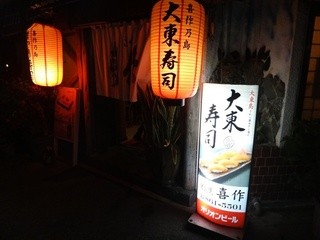 赤提灯や看板にも、ハッキリと「大東寿司」と書かれていますので、これを目印に訪れてみてください。