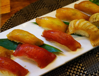 「大東寿司」が絶品と、高く評価されている【喜作】。沖縄の離島である大東諸島に伝わるタレを染み込ませた寿司です。