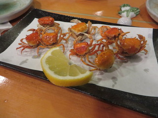 こういった躍動感のある料理も良いですね。沢蟹の素揚げは、お酒のおつまみとして最適。
