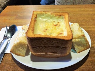 グラタンの入ったパンや、逆さソフトクリームなど、インパクトのあるメニューだけでなく、普通のモーニングセットもあります(笑)