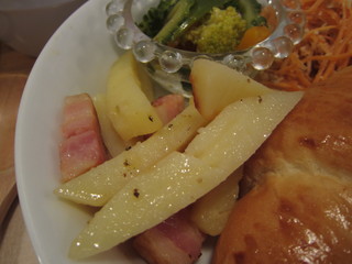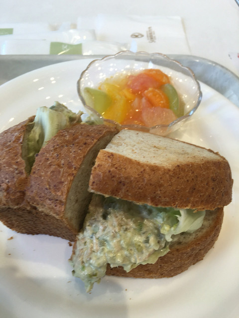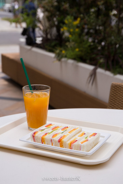 6枚切りのイギリス食パンを2枚使って、それを半分にカットしてあるのかな?というボリューム感なの~。パンはふんわ~りやわらかくって、温めてくださったのかしら?手に持つと、パンの温かさを感じる。そして、その具がた~っぷりで、パンの厚みよりも具の厚みの方があるっていうくらい。アボカドとツナがミックスしたシンプルな具で、マヨネーズで和えたっていう安っぽい感じはなくて、素材感を存分に生かした味。