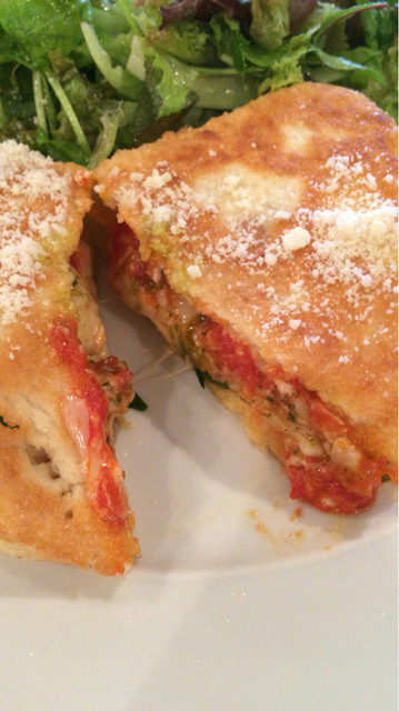 生地はサクフワで、中のチーズも油っぽさのない質の良いモッツァレラチーズに酸味のトマトソースが合う♪オリーブオイルも香りが良くてサラッとしている。大きさも大満足のボリューム♪
