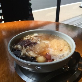 舌が喜びます。シロップは黒糖のコクを感じつつも、素焚糖(すだきとう)のさっぱりした甘味なので、豆花の味も、トッピングの雑穀類の素朴な味も、きちんと感じることが出来ました。