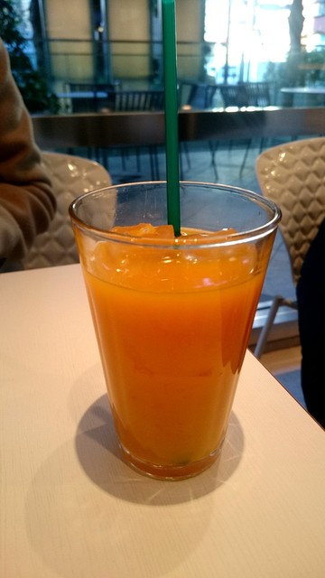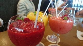 果物やミントをスプーンで突っついてから飲んだシトラスパインは爽やかな香りで美味しい。まだまだ暑さが続く中で有難い飲み物です。どうするのが正しいか分かりませんが、もったいないので後半は果物やミントの葉っぱを食べながら炭酸水を飲みました。