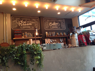 アイスクリームはスタンドに乗って提供されるのでコーヒーと一緒に楽しみたい時に嬉しいですね!アイスクリームはシングル500円。ダブルにも出来るそうです。アイスクリームは濃厚でヌガーナッツも予想以上にゴロゴロ。甘みもしっかりかりコーヒーととても合いそうです☆