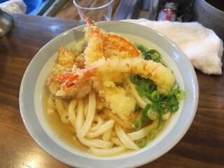 単品でトッピングすると、とり天、ちくわ天共に120円だから、50円お得なのですね。で、うどんを一啜り。うん、旨い!讃岐うどんに比べたら、少し柔らかめだが、コシもしっかりあり、なによりこのうどんでかけが300円というのは素晴らしい!