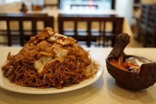 デカ盛りで有名な中華料理屋さん。メニュー数がかなり多く、焼きそばだけでも15種類前後あるとのこと!麺類以外にご飯類や定食、点心などが揃っている。並盛でも結構なボリュームのランチなので、お腹ペコペコなときにおすすめです。