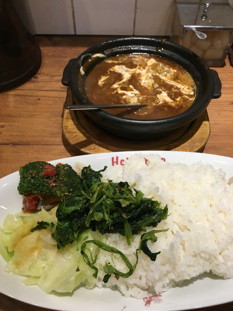 大変美味しいカレーです。なんというか、欧風カレーとインドカレーを足して2で割ったようなコクがあるのに、スパイス感もちゃんとある。そのうえシャバシャバでなく、よくよく煮込んでトロリ感のあるカレーでした。これはやみつきになりますね~。