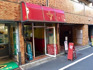 五反田駅のすぐ近く、ビルの地下1階にあります。金色の看板が目印です。