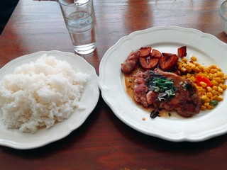 どのランチにも、たっぷりのライスとサラダが付いてきます。美味しいお肉にご飯も進みます!