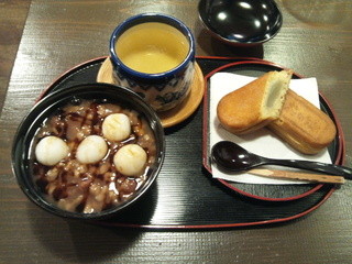 台湾ぜんざいと紅芋あんの揚げ饅頭「さとの花焼き」。このさとの花焼きはお土産に購入することも可能です。