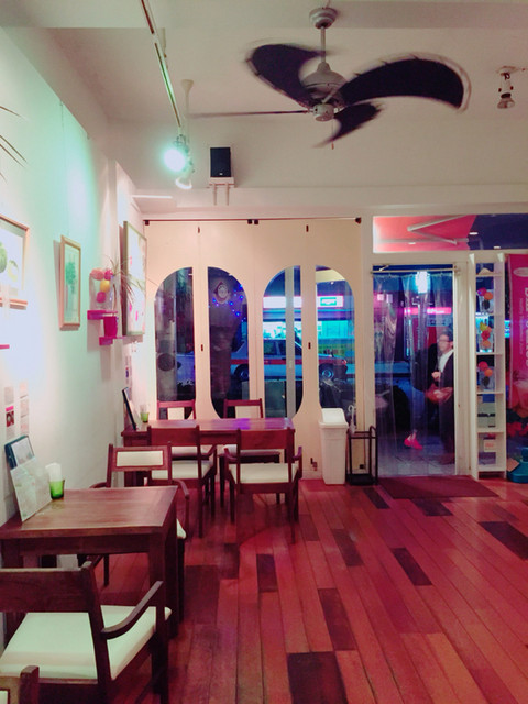 沖縄県那覇市、牧志駅から徒歩5分、てんぶす那覇から徒歩2分です。那覇の街に面したテラス席もあります。